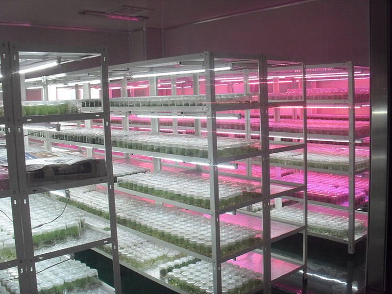 ③管理方便,利于工廠化生產(chǎn)和自動化控制。植物組織培養(yǎng)是在一定的場所和環(huán)境下,人為提供一定的溫度、光照、濕度、營養(yǎng)、激素等條件,既利于高度集約化和高密度工廠化生產(chǎn),也利于自動化控制生產(chǎn)。它是未來農(nóng)業(yè)工廠化育苗的發(fā)展方向。它與盆栽、田間栽培等相比省去了中耕除草、澆水施肥、防治病蟲害等一系列繁雜勞動,可以大大節(jié)省人力、物力及田間種植所需要的土地。