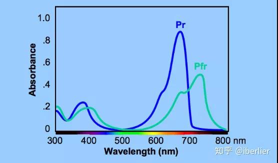 在紅光區(qū)域主要是由光敏色素起作用,其是一種易溶于水的色素蛋白質(zhì)。光敏色素的生理作用甚為廣泛,它直接或者間接的影響著植物從種子萌發(fā)到開花、結(jié)果及衰老等一生的形態(tài)建成。