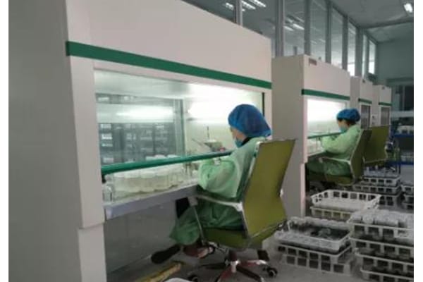 當(dāng)瓶苗長(zhǎng)到4~6片葉、植株高約4cm時(shí)可出瓶移栽。將瓶苗取出,置于清水中漂洗,洗去根部的培養(yǎng)基后,栽植于珍珠巖的基質(zhì)中。小苗移栽后要經(jīng)常給葉片噴水,為保證植物恢復(fù)生長(zhǎng)所需養(yǎng)分,可在小苗移栽后用無機(jī)營(yíng)養(yǎng)液或培養(yǎng)基的母液進(jìn)行葉面施肥,每隔3d一次。若遇高溫、光照強(qiáng),還應(yīng)搭蓋遮陰網(wǎng)或罩薄膜。