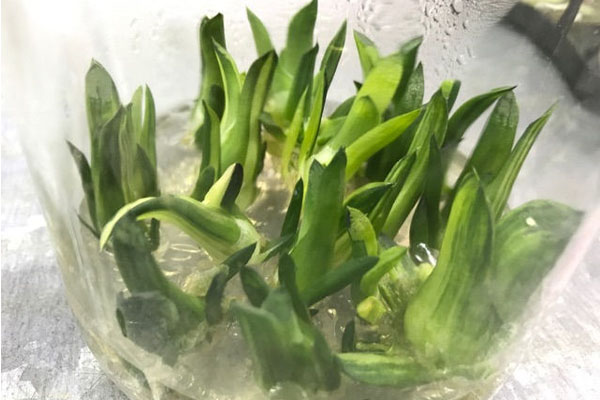 首先要配制好多種培養(yǎng)基,主要有用來(lái)形成原球莖的培養(yǎng)基;從原球莖分化芽和根的培養(yǎng)基;適合幼苗快速生長(zhǎng)的培養(yǎng)基。然后,把分離切割好的細(xì)小培養(yǎng)物接種在利于形成原球莖的培養(yǎng)基上。