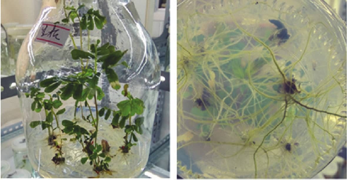 圖1 添加IBA 0.5 mg·L-1的誘導(dǎo)苗長(zhǎng)勢(shì)及生根(25 d)