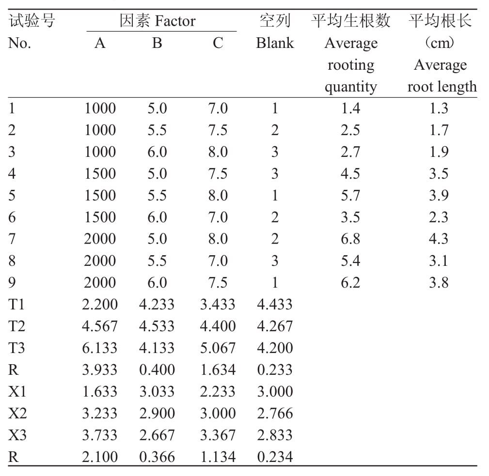 表1 鐵皮石斛生根的試驗(yàn)因素及水平