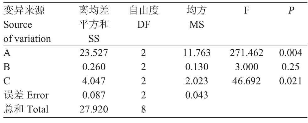 2.3 極差分析與方差分析