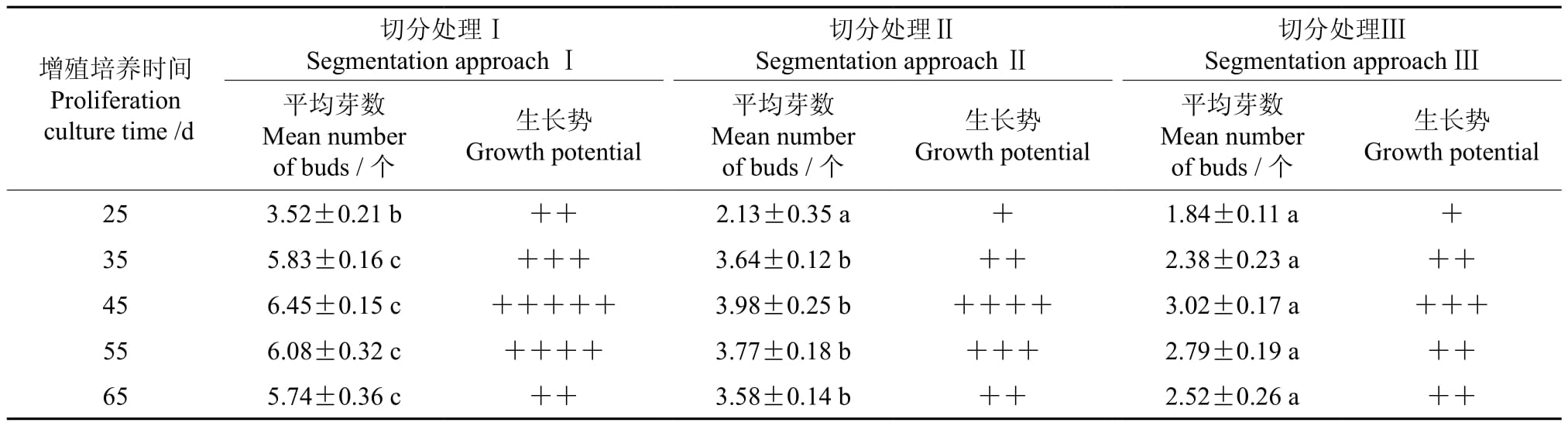 2、不同的增殖培養(yǎng)時間及切分外植體方式對多花黃精組培苗增殖的影響