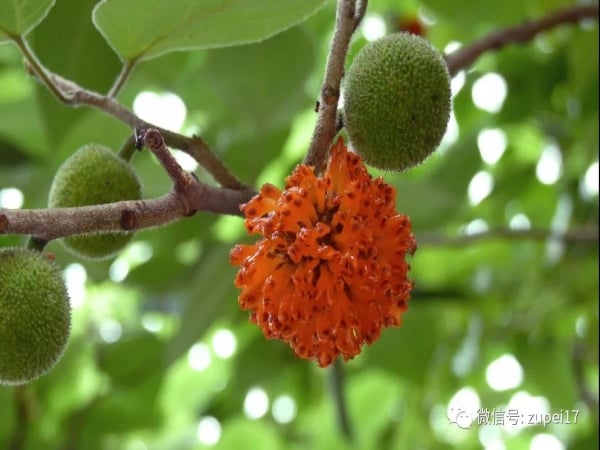 聚花果直徑1.5-3cm,成熟時(shí)橙紅色,肉質(zhì);瘦果具有等長的柄,表面有小瘤,龍骨雙層,外果皮殼質(zhì)?;ㄆ?-5月,果期6-7月。