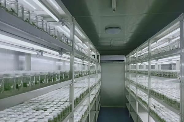 在對培養(yǎng)基和接種工具滅菌時,要先檢查滅菌鍋的使用情況,發(fā)現(xiàn)問題要立即檢修。在滅菌過程中要絕對保證滅菌應(yīng)達(dá)到的壓力、時間,確保滅菌質(zhì)量。一般要求壓力應(yīng)達(dá)到0.1個大氣壓,時間維持在15~20分鐘,并且壓力表降到零后不能馬上出鍋,防止外界環(huán)境的冷空氣倒吸入已滅菌的培養(yǎng)瓶內(nèi)引起真菌污染,應(yīng)待鍋內(nèi)稍冷卻后再出鍋。對組培生產(chǎn)過程中培養(yǎng)容器封口采用塑料蓋、膠塞、棉塞、薄膜等材料,在使用前要認(rèn)真做好清冼和消毒工作,不符合要求堅決不用。在分裝培養(yǎng)基時,勿觸瓶口,防止培養(yǎng)基粘在瓶口上,引起污染,瓶口封好后要檢查封口是否破損,扎瓶口位置適當(dāng),松緊適宜。對已污染組培瓶要經(jīng)高壓滅菌后再清洗。