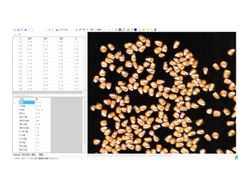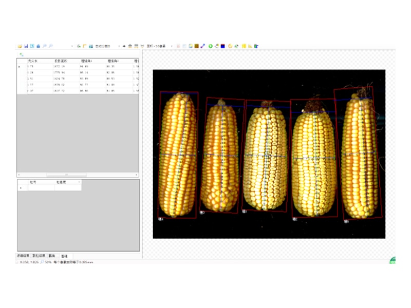 3、玉米截面分析功能:玉米的穗粗、軸粗、穗行數(shù)、粒寬。一次性最少可測(cè)15個(gè)截面。