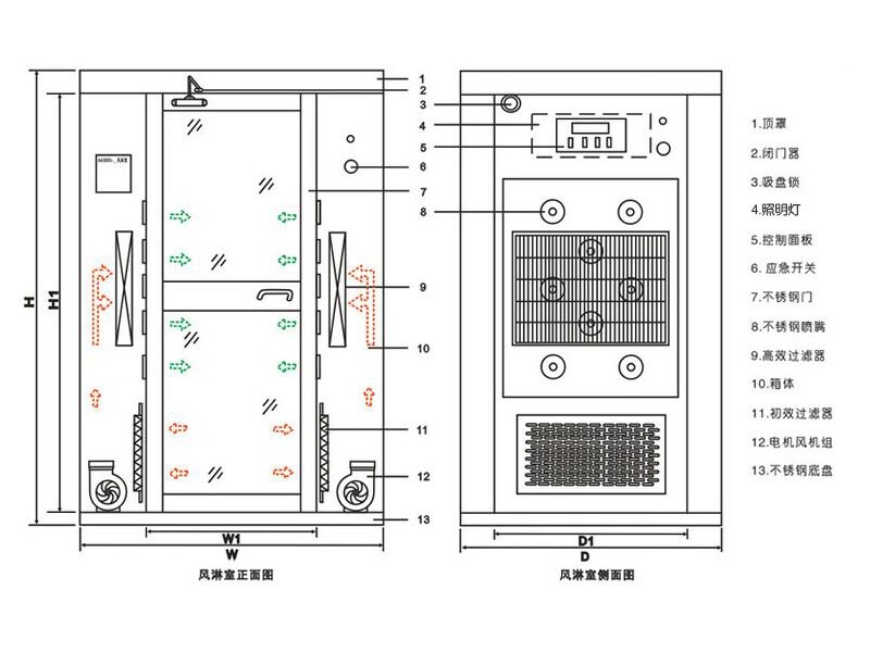 全不銹鋼風(fēng)淋室:這是一種采用國際先進(jìn)技術(shù)設(shè)計(jì)、經(jīng)精密數(shù)控設(shè)備生產(chǎn)制造的風(fēng)淋室,是一種通用性較強(qiáng)的局部凈化設(shè)備,安裝于潔凈室與非潔凈室之間的隔墻處,用于人員或物體進(jìn)入潔凈區(qū)時(shí)的吹淋除塵。使用后可有效和減少塵源進(jìn)入潔凈區(qū),使?jié)崈魠^(qū)保持正常的工作狀態(tài)。它廣泛適用于食品飲料、電子、醫(yī)藥衛(wèi)生等各種行業(yè)及科研領(lǐng)域。特點(diǎn):1、箱體采用優(yōu)良SUS304不銹鋼板經(jīng)進(jìn)口數(shù)控機(jī)床剪、折、焊接而成,確保設(shè)備表...